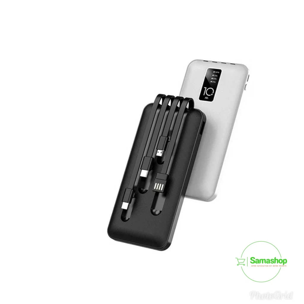 vec ou sans câble de connexion, rechargez votre téléphone partout gràce à la technologie sans fil de ce dispositif de stockage d’énergie! Avec une capacité de 10000 mAH, beneficier d’une réserve d’énergie pour au moins 2 voir 3 charges.